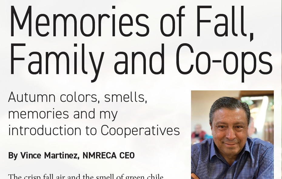 So here we are, 50 years later, and I have the honor and privilege of representing New Mexico’s Rural Electric Cooperatives and their member-owners through NMRECA. Although fall is my favorite, I can assure you my staff and I will continue to work hard through all seasons to ensure the continued success of our rural electric cooperatives. Best wishes for a great fall.